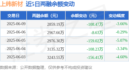 - 上纬新材:6月9日融资买入178.91万元,融资融券余额2859.19万元